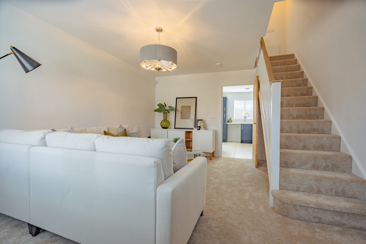 A bright spacious lounge and space under the stairs to convert into yet another space to study.